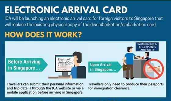 为确保新电子抵达卡的顺利实施,新加坡移民厅将于2018年10月4日起对新加坡的外国游客进行为期三个月的试验。该试验不会影响新加坡人,永久居民和长期通行证持有人(例如学生)返回新加坡的工人,因为他们不需要提交任何入境卡。